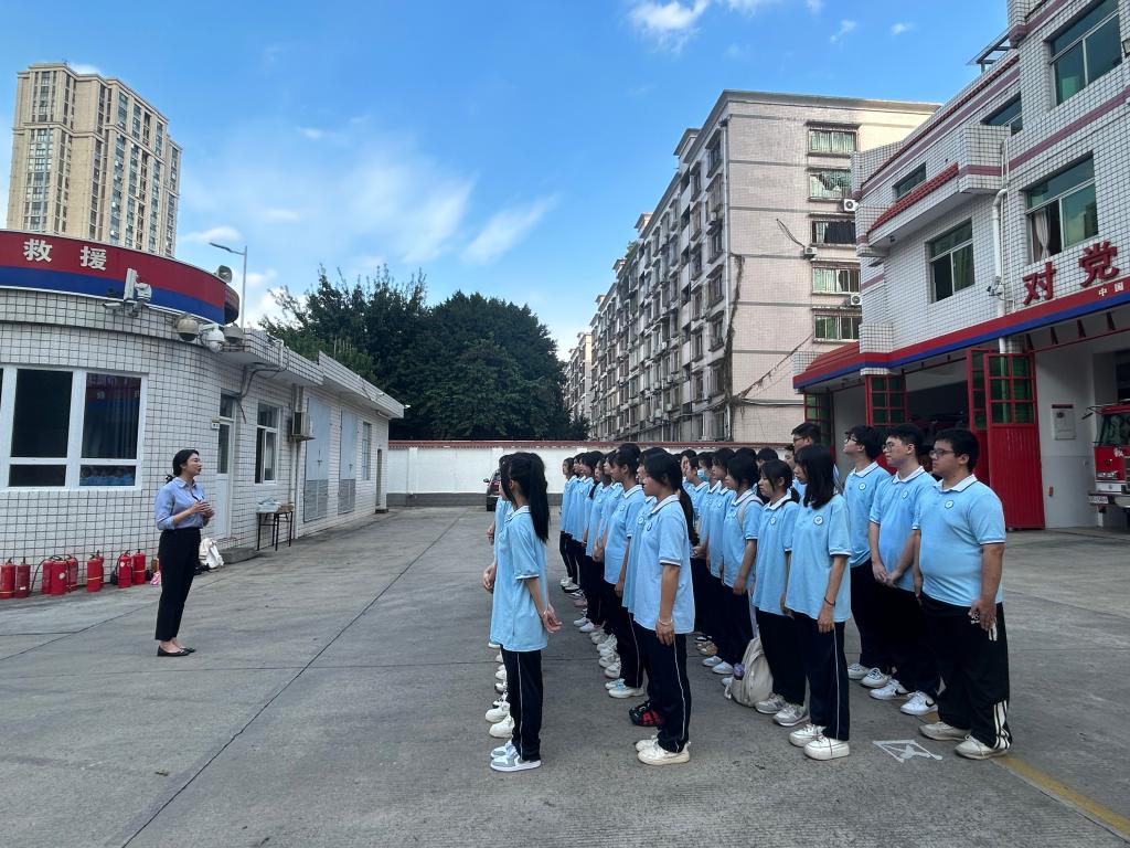 11月6日下午,在“119全国消防日”来临之际,我校组织22级运营1班学生走进福州市晋安区新店消防救援站,开展消防安全现场主题班会。此次班会由学校学生科、团委牵头,悦心班主任工作室的成员谢芳和陈凡贞两位老师主持,新店消防救援站指导员杨超全程讲解、辅导。