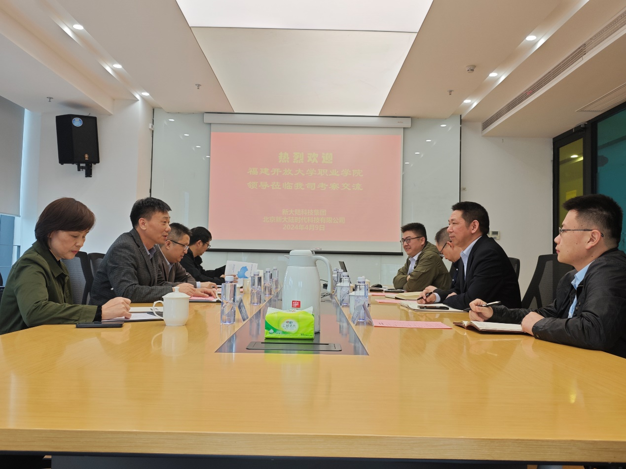 为深化产教融合与校企合作,加强教育链、人才链与产业链、创新链的有机融合,提升我校的专业建设和育人水平,4月10日,我校校长陈伟雄一行前往福建新大陆时代科技有限公司开展考察交流。福建新大陆时代科技有限公司总经理周洪耀、总监谢曦、销售经理林源民及技术经理蔡灵等企业专家热情接待。我校一行参观了新大陆教育创新实训基地、新大陆科技园区企业创新成果展示馆,随后双方就校企合作、人才培养、专业建设等多个方面进行了座谈交流。
