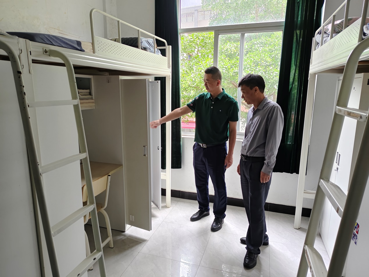 检查组深入学生宿舍、各实训场所、运动场等区域,着重检查学生宿舍安全用电、消防设施正常运行、疏散通道和安全出口畅通及校园围墙周边山体隐患等相关情况进行了深入细致的排查。随后,陈伟雄要求各楼宇值班人员及保安人员要增加巡视频率,防止消防和汛期安全事故的发生。