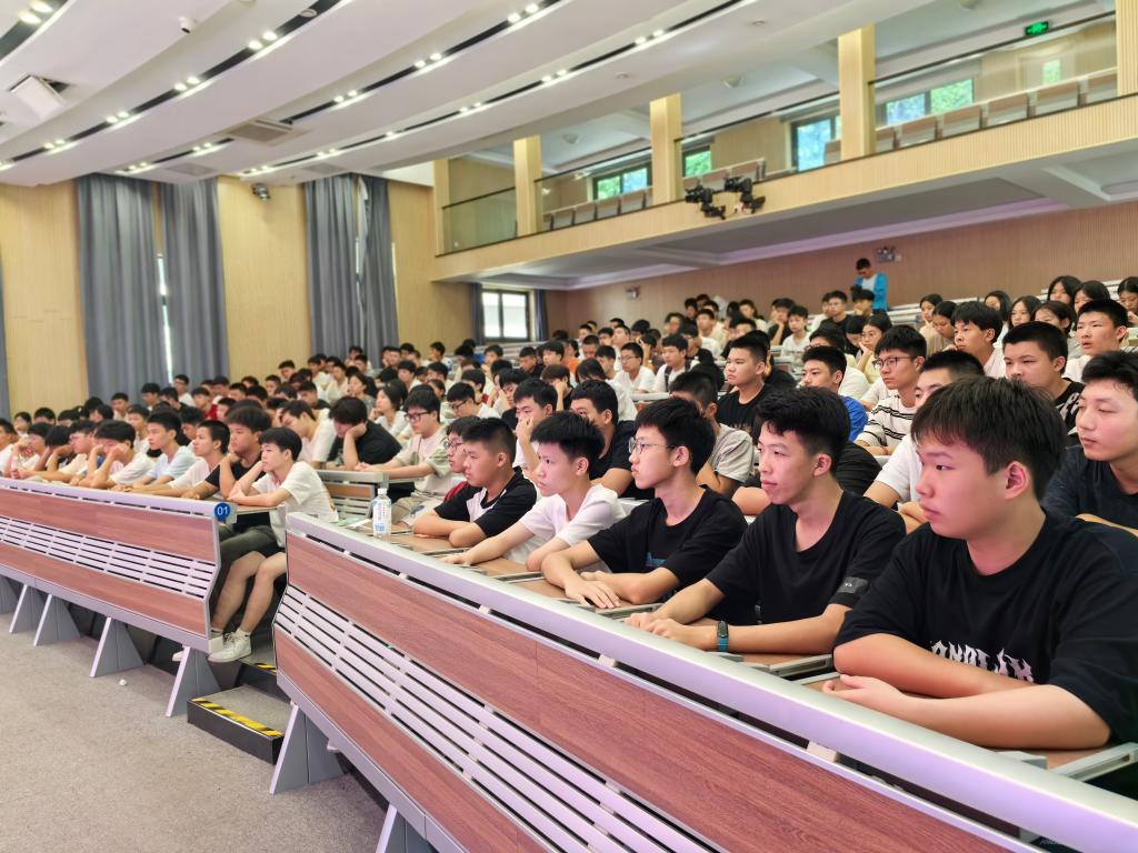 党课采用线上线下相结合的方式,电气系170名新生到场聆听,交通系和机械系其余新生在教室同步观看线上直播。吴宁晖以巴黎奥运会这一焦点话题为切入点,介绍了谢瑜、潘展乐、郑钦文、孙颖莎等13位具有代表性的奥运冠军的成长和夺冠历程。他总结道,运动员们在赛场上奋勇争先,超越自我,充分展现了爱国、拼搏、坚定和自信的奥运精神,生动诠释了新时代中国精神。成绩彰显自信,中国体育代表团的优异成绩,不仅体现了中国迈向体育强国的自信,更彰显了对中国特色社会主义道路、理论、制度和文化的自信。他强调,作为中职学生,身处于这个伟大的时代,要坚定“四个自信”,将个人的理想追求融入党和国家的事业之中。党课的尾声,吴宁晖勉励同学们要牢记习近平总书记的殷殷嘱托,以实现中华民族伟大复兴为己任,增强做中国人的志气、骨气、底气,不负时代,不负韶华,不负党和人民的殷切期望。