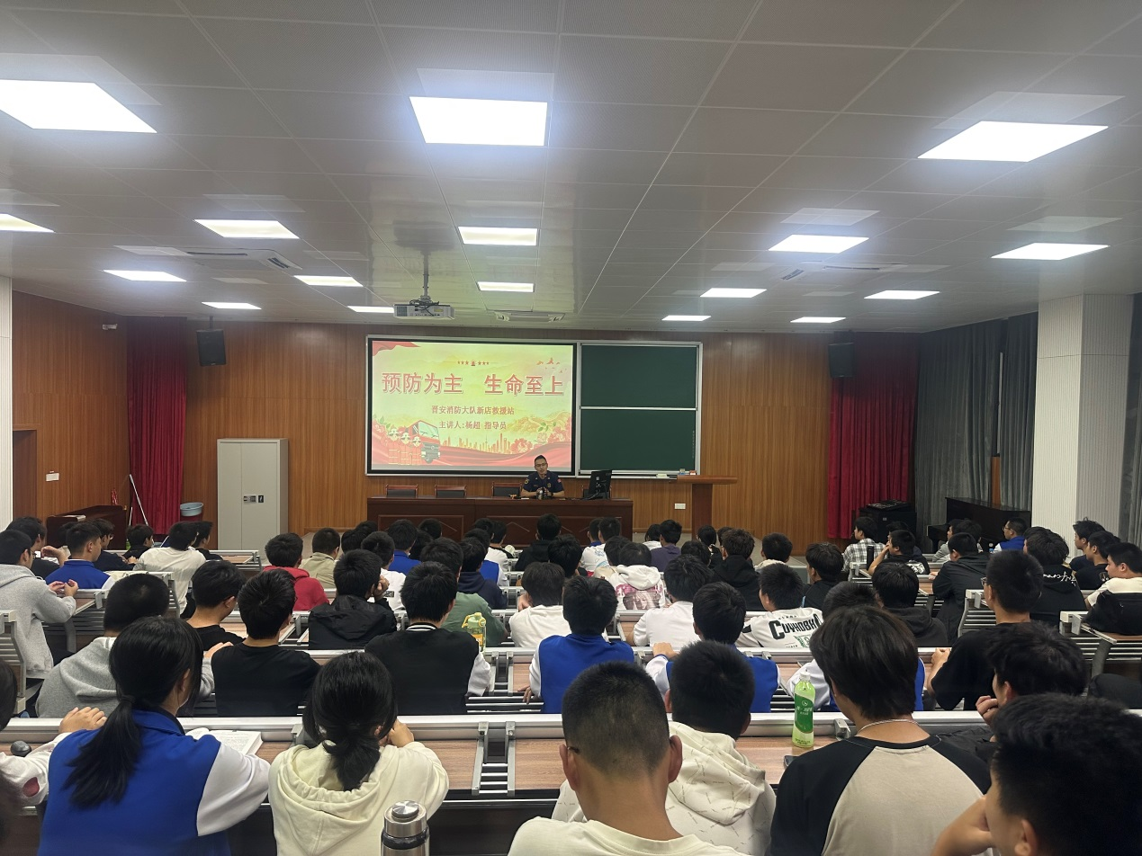 为提高24级新生对消防安全的重视程度并普及消防安全知识,10月30日下午,学校邀请晋安消防大队新店救援站指导员杨超进校,开展了“预防为主 生命至上”为主题的消防安全专题讲座。