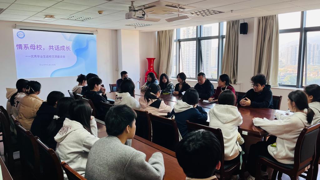 11月25日,交通工程系“情系母校,共话成长——交通工程系开展优秀毕业生返校交流座谈会”在我校会议室顺利举行。活动邀请了四位我校毕业并升入福建理工大学的优秀毕业生代表返校分享经验,交通系教师代表及学生代表共30余人参与座谈。