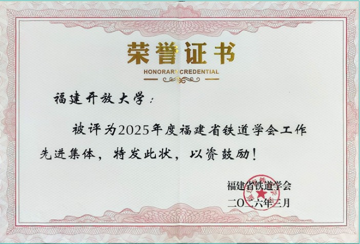 此次获评“铁道学会工作先进集体”,是福建省铁道学会对学校 2025 年度工作的充分肯定与高度认可。未来,学校将以此为契机,继续发挥开放教育与职业教育特色优势,深化与福建省铁道学会的协同合作,持续推进铁路科普基地建设、学术交流与人才培养工作,为服务福建铁路事业发展、助力交通强国建设贡献更大力量。