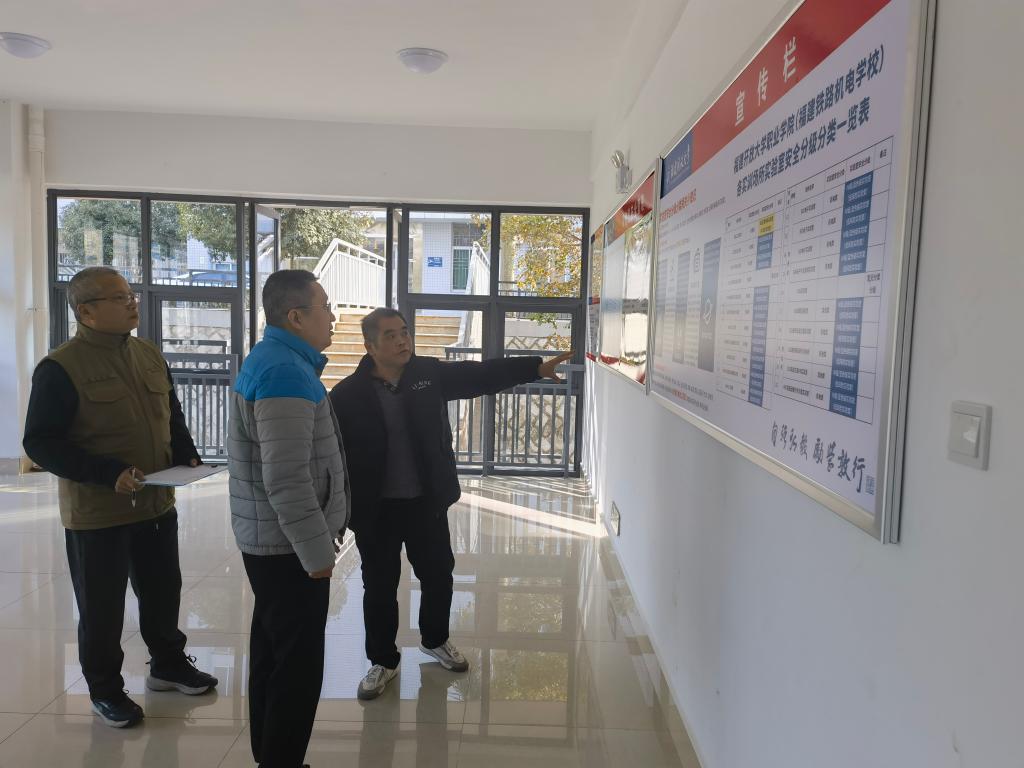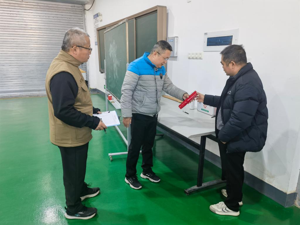为切实做好假期期间校园安全工作,确保实训场所安全无隐患,1月10日下午,副校长李锦带领实训室负责人及相关场所管理人员,开展实训场所期末安全大检查。重点对设备运行、用电安全、消防设施及危险品存放管理等情况等方面进行了全面排查。