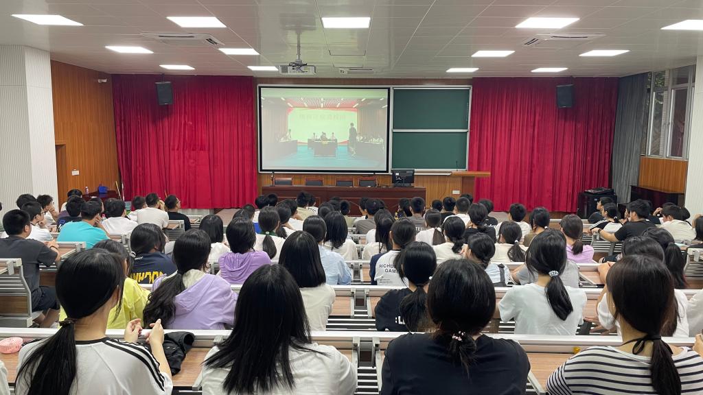 为切实提升青少年法治意识,9月4日下午,我校组织学生在新阶梯教室集中观看了晋安区法院开展的“模拟法庭进校园”主题直播活动。