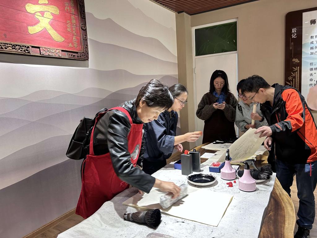 活动首站,党员们一同前往全国首个以师德为主题的博物馆——福建教育学院师德博物馆,开展实践教育学习。该馆围绕“师德发展”和“教育文物”两条主线,通过教材、文献、试卷、教具等珍贵藏品,传播传承师道尊严、弘扬高尚师德的价值理念。党员们在珍贵的历史文物、详实的图文资料中,深刻感受到了师德师风在教育事业中的重要性。随后,党员们体验了雕版印刷技艺。在制作孔子行教像雕版印刷图的过程中,大家不仅感受到了传统技艺的魅力,更通过这一具象化的方式深刻理解了师者形象。