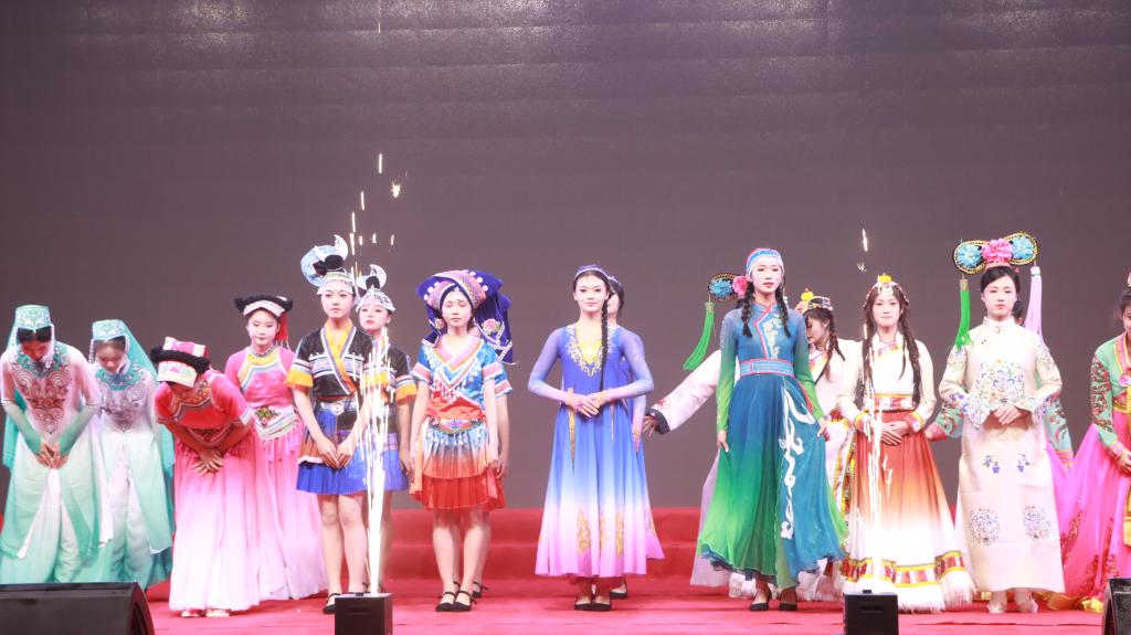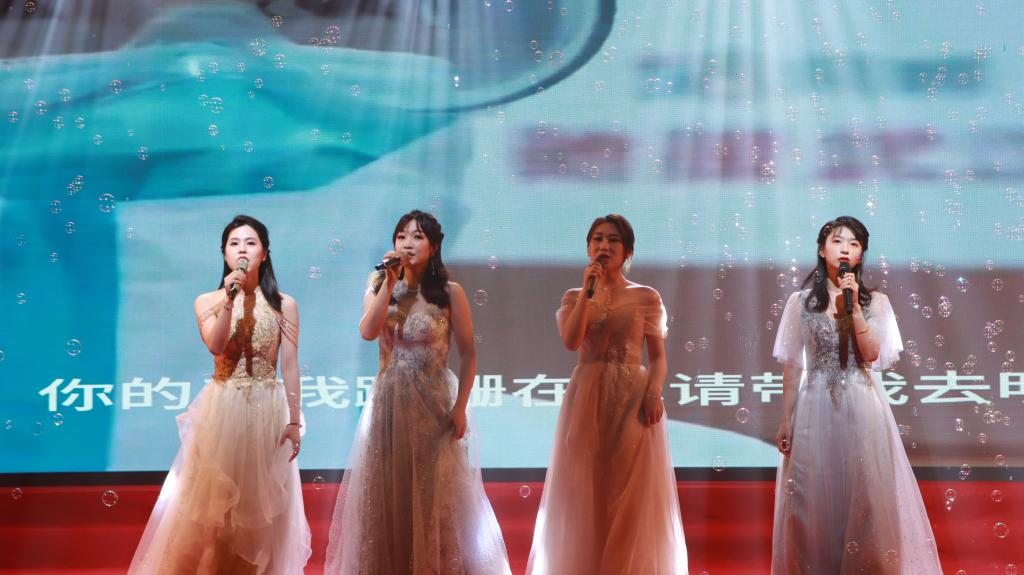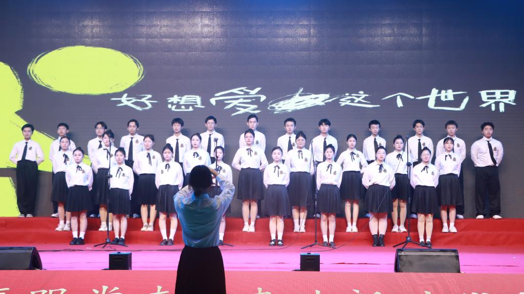 第三篇章中,校声乐社带来合唱《好想爱这个世界啊》用最真诚的歌声,为每一个观众带来温暖的抚慰。心理剧《成为你的一天》惟妙惟肖的表演,向同学们传达了“与其羡慕他人,不如做最好的自己”的道理,发人深思。礼仪时装秀《最炫民族风》将少数民族服装和礼仪深度融合,传承礼仪之风,浸润文明校园,展现了中华民族一家亲。教工合唱《如愿》悠扬的歌声里饱含着中国人血脉里割舍不了的情感,老师们将歌曲中传递的亲情与家国情唱进了观众们的内心。最后,洪建宗、于洁老师献唱《祝福中国》,高亢而优美的旋律,激励着师生在新征程中踔厉奋发,再竞风流。至此,晚会圆满结束。