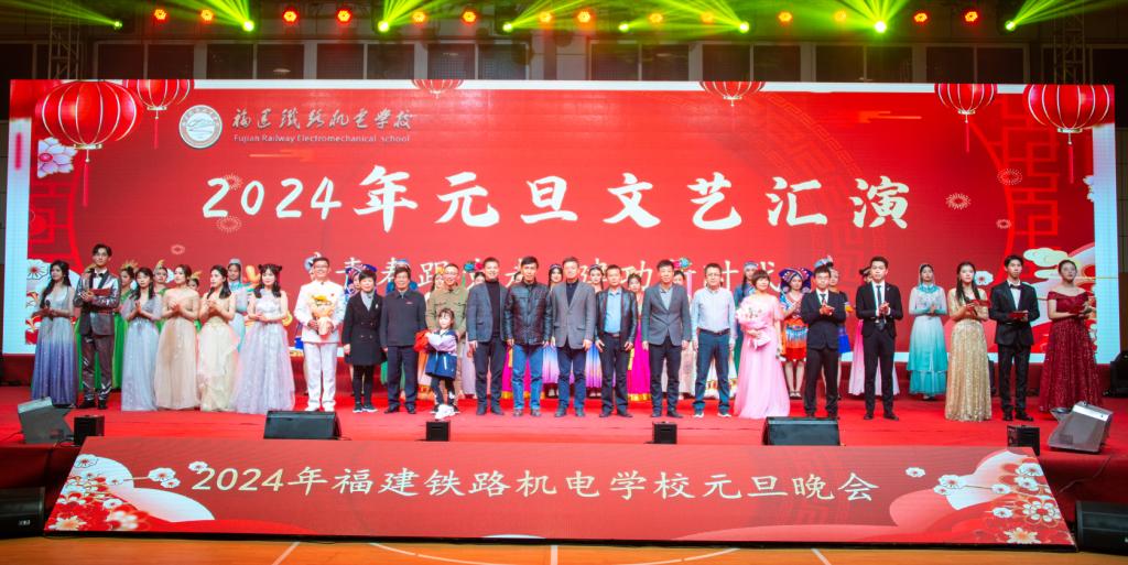 12月28日晚,福建铁路机电学校在后山室内体育馆盛大举行了“青春跟党走 建功新时代”2024年主题元旦晚会。参加此次晚会的嘉宾有校党委副书记马成斌,学生工作处、保卫处处长张以华,团委书记黄生春,团委副书记、文经学院副院长许勇,团委副书记陈珊,以及职业学院领导吴宁晖、陈伟雄、林都郁、汪媚、李锦等。校园师生通过线上线下渠道同步观看了晚会。
