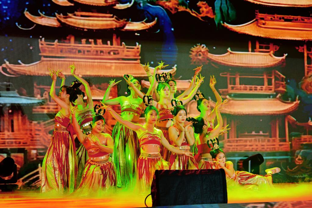 晚会当天,学校精心筹备的敦煌舞《沁莲》、国风舞《又见青白》、街舞串烧等节目在舞台上大放异彩,成为全场瞩目的焦点。舞者们以轻盈灵动的舞步和曼妙多姿的身姿,将敦煌舞的韵律美与情感表达得淋漓尽致,将敦煌壁画中的舞蹈形象生动再现于舞台上。国风舞则融合了传统神话故事与现代元素,巧妙地将古典舞与现代舞相结合,通过优美的舞姿与动人的旋律,传达出对传统文化的热爱与传承。街舞串烧节目则是本次汇演的又一亮点。我校师生以精湛的舞技和独特的创意,将多种街舞风格巧妙融合,展现出青春活力与时尚气息。