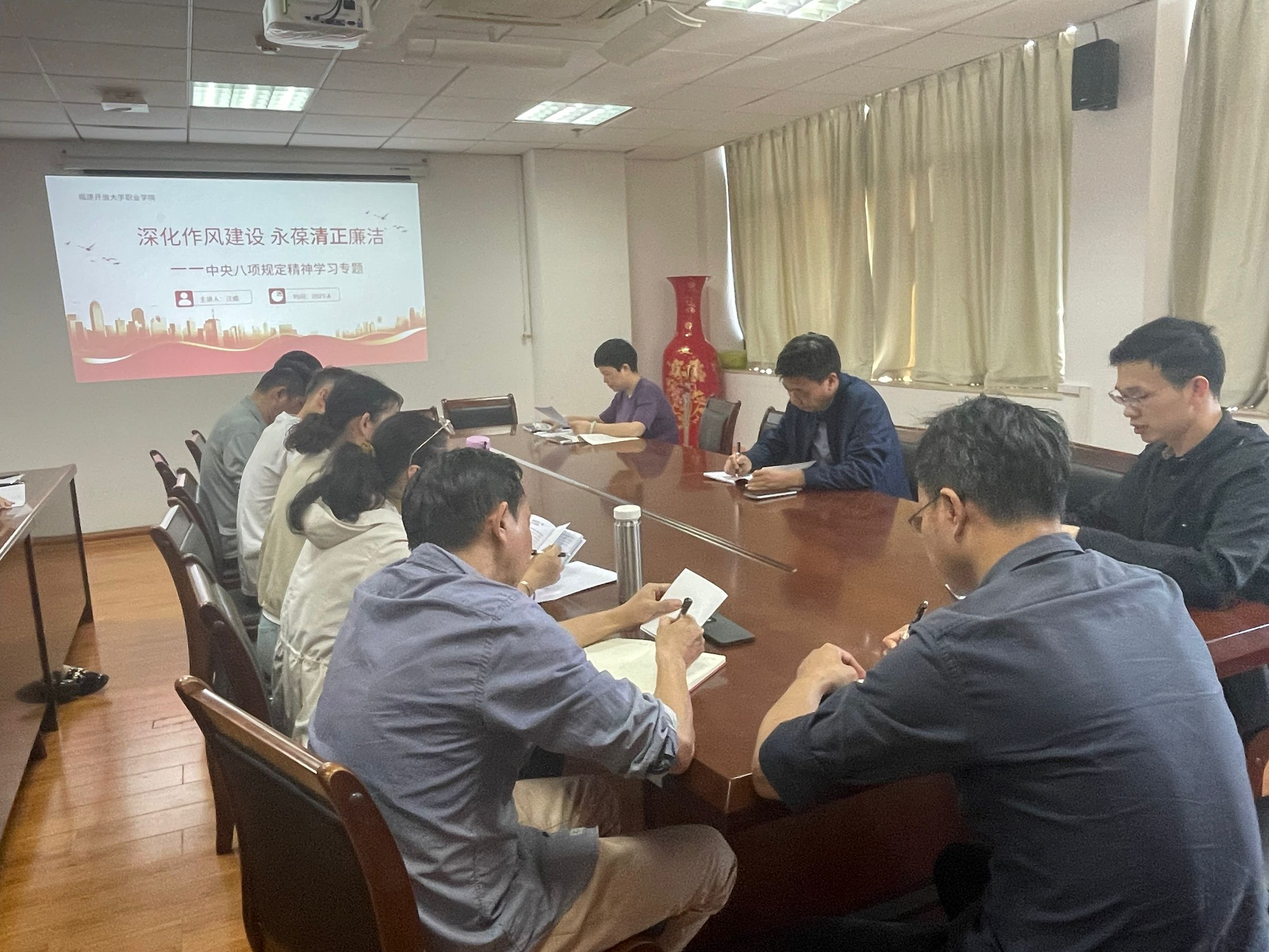 4月15日,机械工程系党支部召开中央八项规定精神专题学习会。我校副校长汪媚以《深化作风建设 永葆清正廉洁》为题讲授专题党课,招生科和机械系全体教职工参加学习。