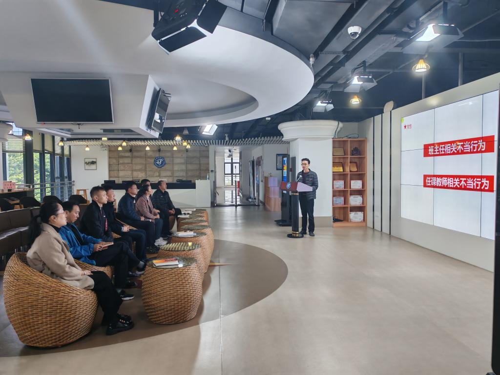 谢友奇指出党风廉政建设永远在路上,针对不作为慢作为乱作为问题,向全体党员提出了三点具体要求:一是要提高政治站位,牢固树立为人民服务的宗旨意识,将群众利益放在首位,勇于担当、积极作为;二是要加强师德师风建设,以“学高为师,身正为范”为行为准则,不断提升自身的职业素养和道德水平;三是要注重教育教学实效,根据学生的身心发展特点因材施教,及时有效地解决学生在学习和生活中遇到的困难和问题。