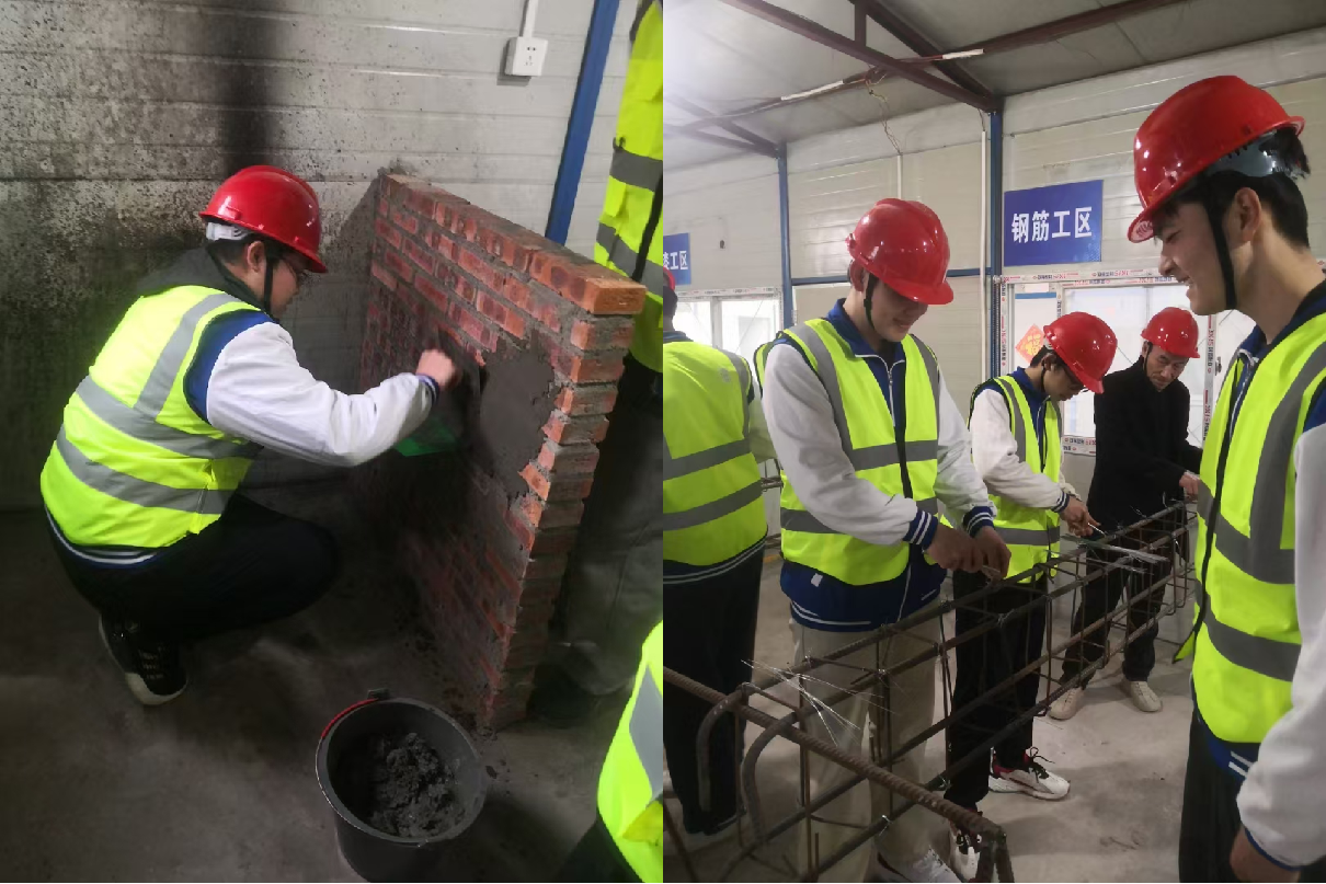 安全教育结束后,学生们统一穿戴反光背心和安全帽,严格遵守工地规定,前往工作区进行了实地操作。在现场工人和技术人员的指导下,学生们体验了混凝土浇筑、钢筋绑扎、砂浆抹墙等施工环节,深入了解了各项施工技术和施工工艺。通过这次实践操作,学生们不仅巩固了课堂所学知识,还增强了理论联系实际的能力,提升了自身的实践技能。